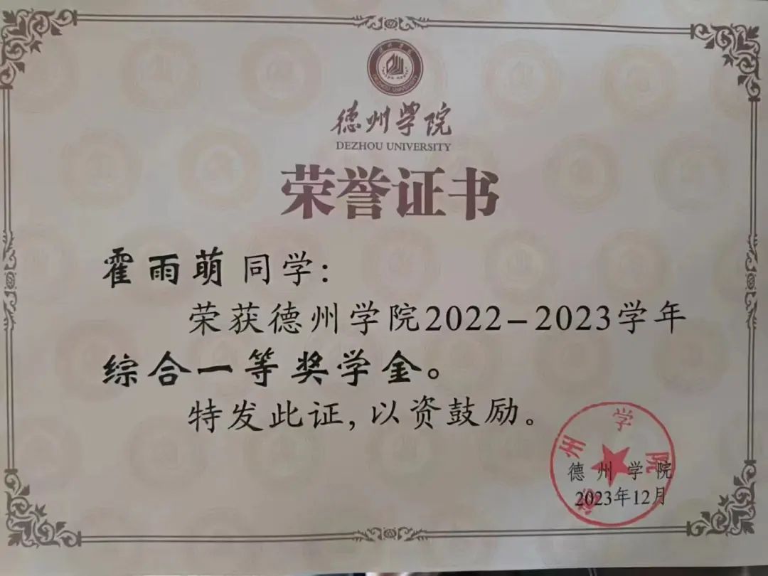 2022-2023学年综合一等奖学金