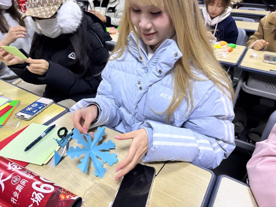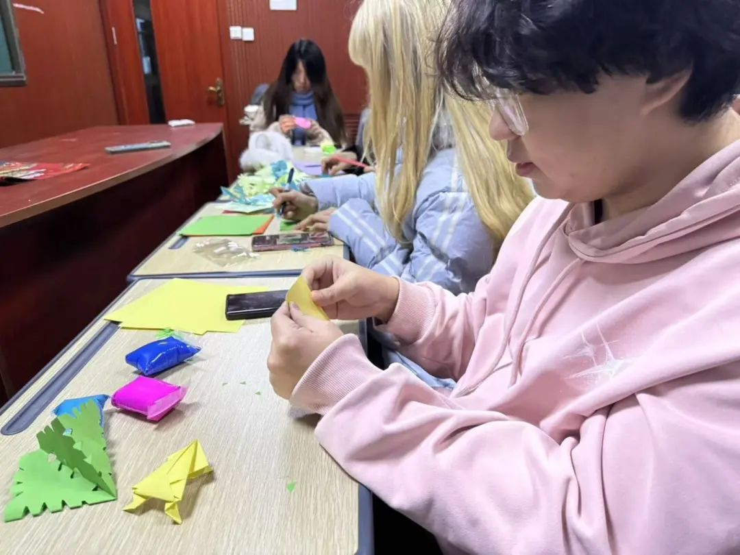 活动现场热闹非凡,温馨四溢。在活动举办人的耐心引导下,同学们踊跃参与,从精心挑选纸张到专注构思图案,每一步包含了小巧思。同学们在这一过程中全神贯注,沉浸在剪纸创作的乐趣里,一幅幅精美的剪纸作品应运而生,每一幅都饱含着个人的创意与情感。