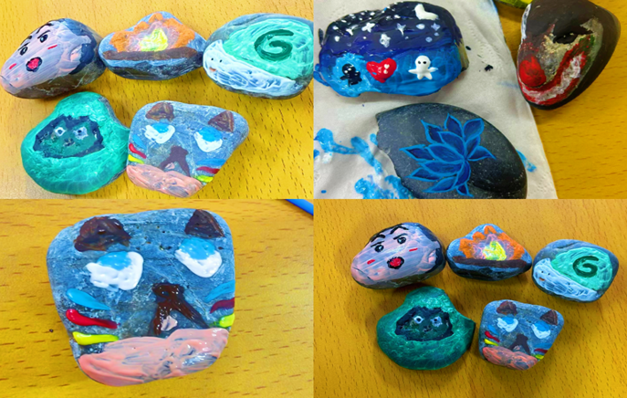 创作过程中,同学们积极交流灵感、分享感受,现场氛围轻松融洽。经过约三十分钟的创作,原本朴素的石头被赋予了个性化的艺术生命,成为承载情绪与希望的有形纪念。活动最后,全体参与者手持作品合影留念,记录下这段宁静而充实的时光。