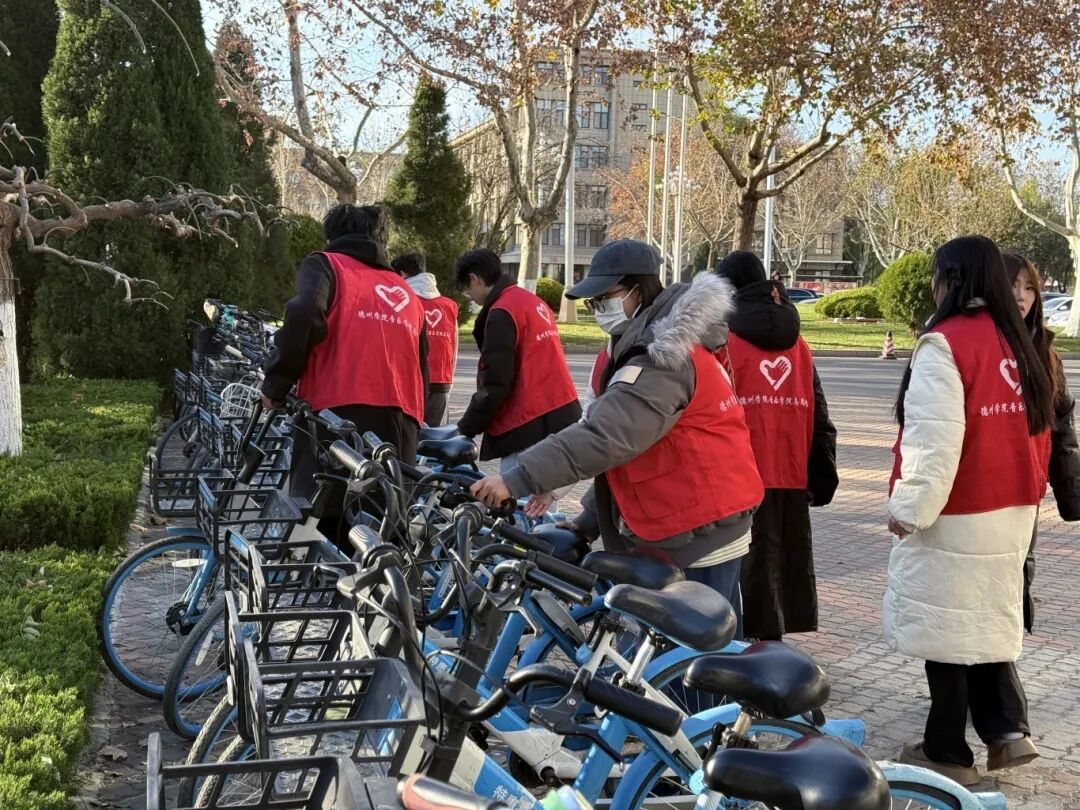 为优化校园环境、厚植志愿服务精神、强化学子文明停放意识,11月30日,德州学院音乐学院2024级、2025级志愿者组建服务队,开展校园单车规范摆放志愿行动,以实际行动助力文明校园建设。