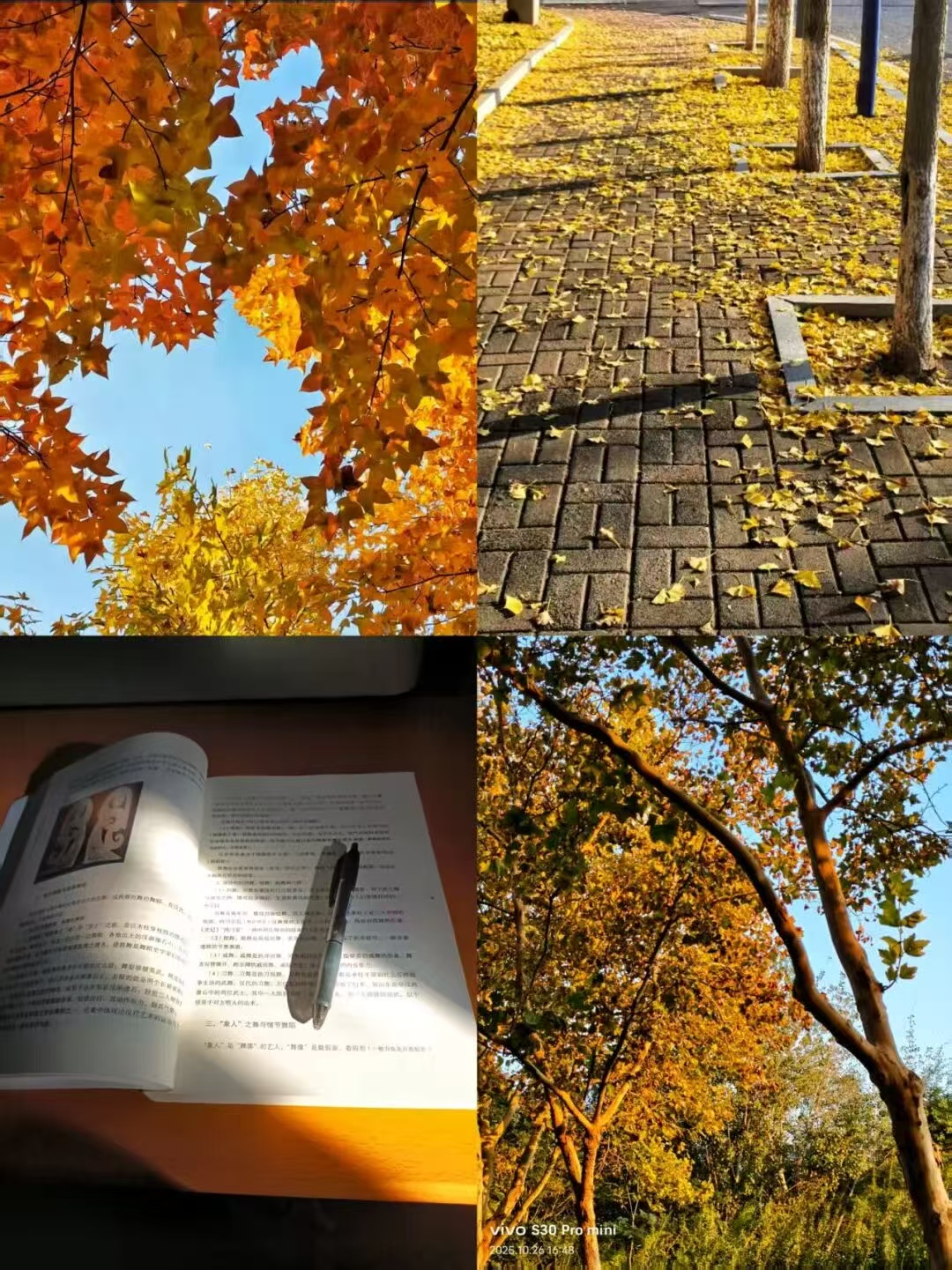 本次活动以校园风光为创作载体,通过摄影等艺术形式,引导学生在观察校园景色的过程中发现美、感受美、创造美。活动期间,同学们积极参与,用镜头捕捉校园的独特魅力:金黄树叶与古朴建筑的相映成趣,冬日暖阳下的校园萌宠,光影交织的林荫小径,以及充满诗意的校园景观。同学们将个人情感与校园秋景巧妙融合,拍摄出一幅幅富有艺术感染力的作品。