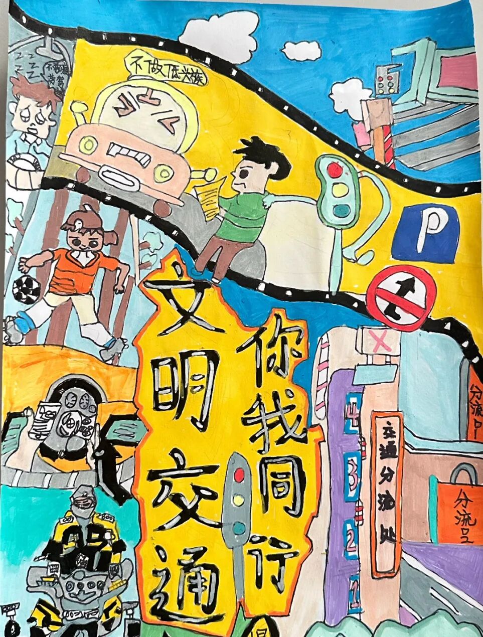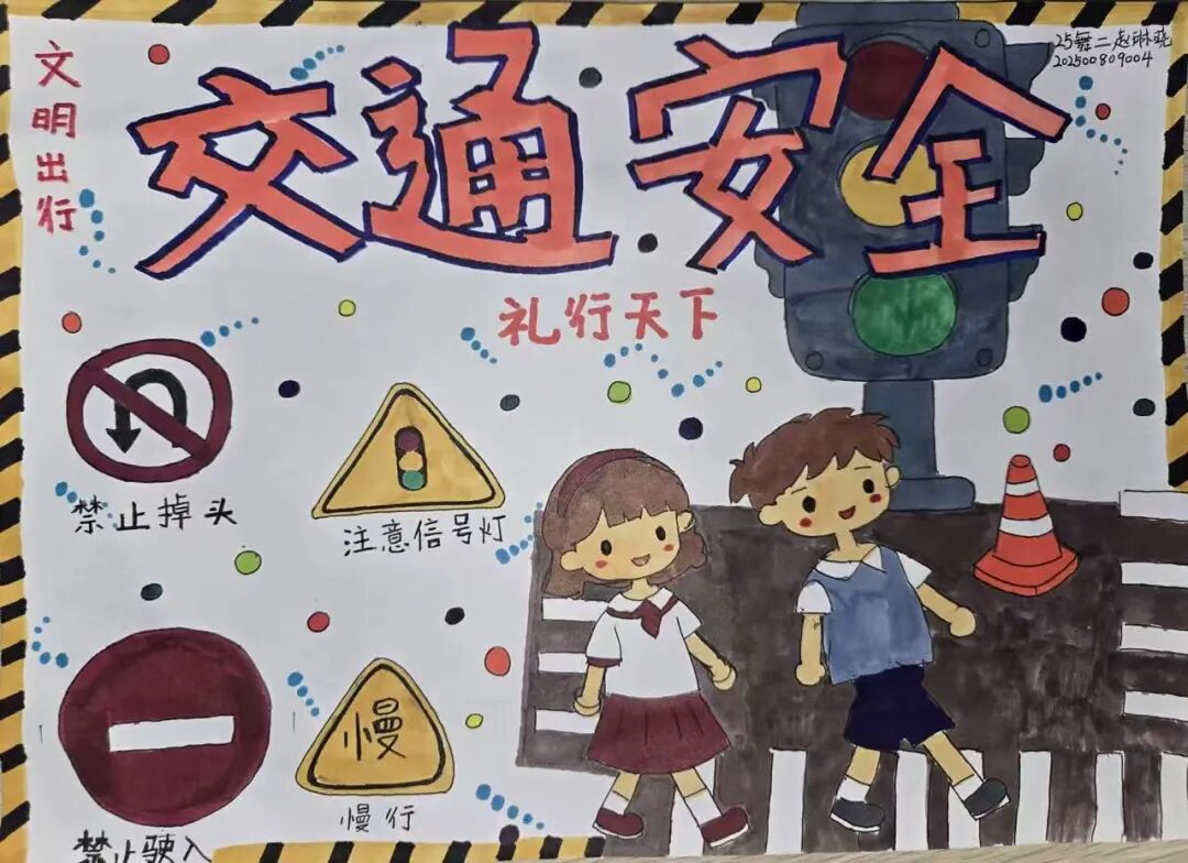 自12月10日起,音乐学院开展了为期一周的“文明交通伴我行”手抄报创作展评活动。同学们以个人或小组形式,将学习所得进行艺术化再创造。他们精心构图,用画笔描绘交通标志、文明出行场景,用心书写,摘录法规要点、撰写安全感悟,最终设计出一幅幅版面美观、内容翔实的作品。活动后期,优秀作品在学院宣传栏及线上平台集中展示,吸引众多师生驻足观看。本次活动,不仅激发了学生的创作热情,更让交通安全知识在潜移默化中深入人心,从而实现了从知识传递到文化涵育的有效转化。