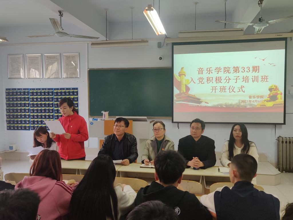 为提高入党积极分子队伍素质,保证新党员质量,4月6日下午,音乐学院在二楼合堂举办第33期入党积极分子培训班开班仪式暨党课第一讲。音乐学院党总支委员、学生党支部委员出席了开班仪式。仪式由党总支副书记贺昱主持。第33 期入党积极分子全体学员参加。