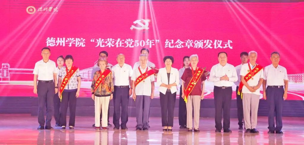 党龄丈量了平凡的生命刻度,也成为了见证伟大的坐标。活动中,学校举行了2023年德州学院“光荣在党50年”纪念章颁发仪式,崔晓红、车滨、王金利、张明征、迟沂军为王毅、房宪玲、马秀田、王兴臣、董玉香五位老党员代表颁发了“光荣在党50年”纪念章。新党员代表为老党员献花,全场用热烈的掌声向老同志们表示祝贺并致以最崇高的敬意。