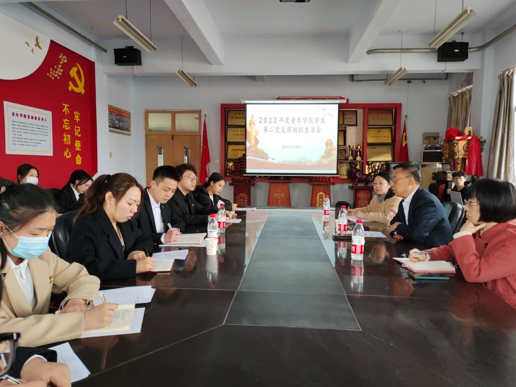 3月23日下午,音乐学院学生第二党支部召开2022年度组织生活会。校党委委员、副校长迟沂军、校纪委综合处李想处长、音乐学院党委副书记王桂英参加并指导组织生活会。