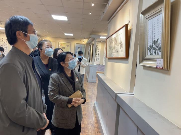 10月17日下午,音乐学院组织教师党员、学生党员在美术楼一楼展览室开展廉洁教育书画展观摩活动。
