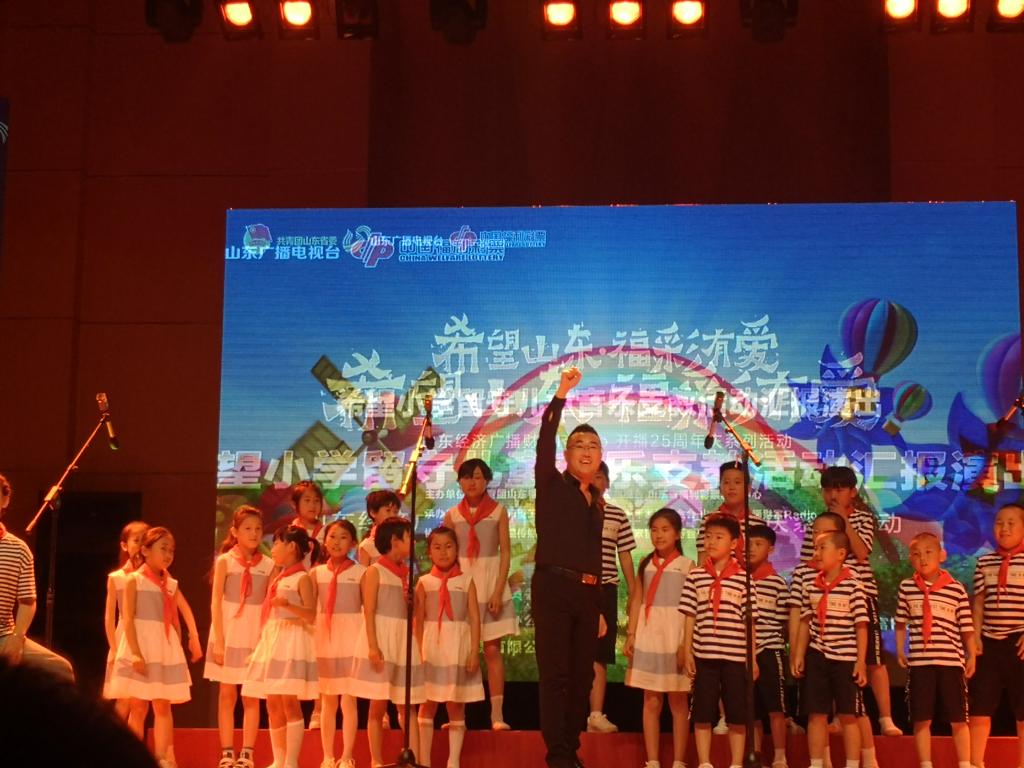 5月25日,音乐学院音乐支教志愿服务团队带领陵城区海尔希望小学合唱团赴山东广播电视台音乐厅参加“希望山东·福彩有爱”希望小学留守儿童音乐支教活动汇报演出,取得圆满成功。音乐学院党总支书记高莉出席现场,实验中心副主任马锡骞指挥合唱团演唱《青春修炼手册》,现场气氛活跃,赢得了热烈掌声。