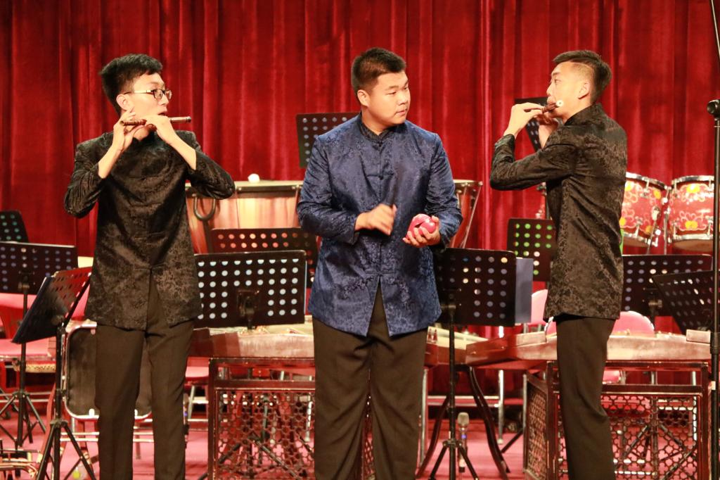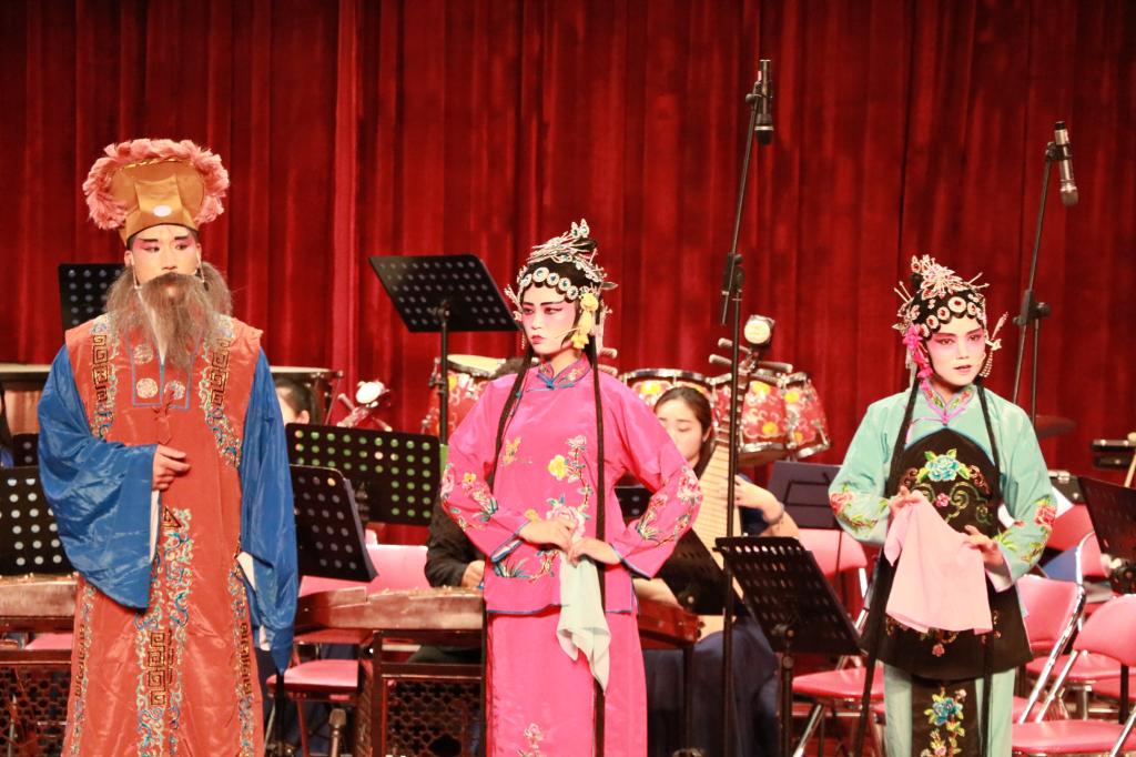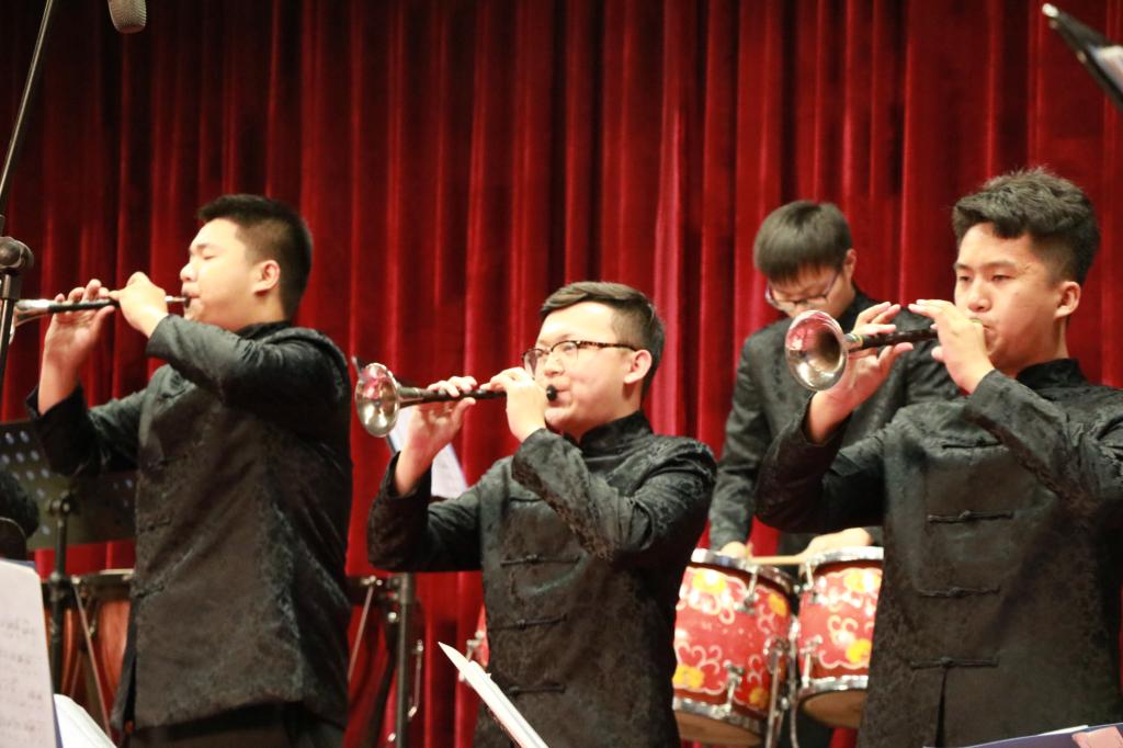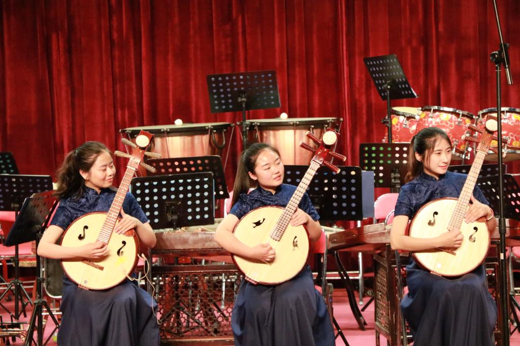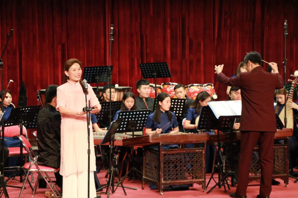 音乐会以一首吹打乐合奏《千年运河展新颜》拉开帷幕,乐曲慷慨激昂为音乐会营造了高昂的气氛。之后,竹笛二重奏《顶嘴》、二胡齐奏《新赛马》、阮重奏《山行》、弹拨乐合奏《看秧歌》、打击乐合奏《鸭子拌嘴》、器乐小合奏《独弦操》充分展示了各声部的乐器特色,将乐曲完美展现,让观众感受到了中国传统民族器乐的魅力。此外,青年教师薛莲、杜乡带来的歌曲《一杯美酒》、《绣荷包》、《打开春天》、《和谐大家庭》赢得了现场观众的阵阵掌声,充分展示了我院教师的专业水平。音乐会还有德州地方戏曲《一勾勾》选段四人对唱,体现出了传统文化的传承和发扬,把演出气氛推向了高潮。最后一曲民乐合奏《大同梦》音乐会在宏伟轩昂的旋律中落下了帷幕。此次音乐会促进了两院之间的友好交流,促进双方共同进步,一起感受我国传统民族器乐的独特韵律和魅力。