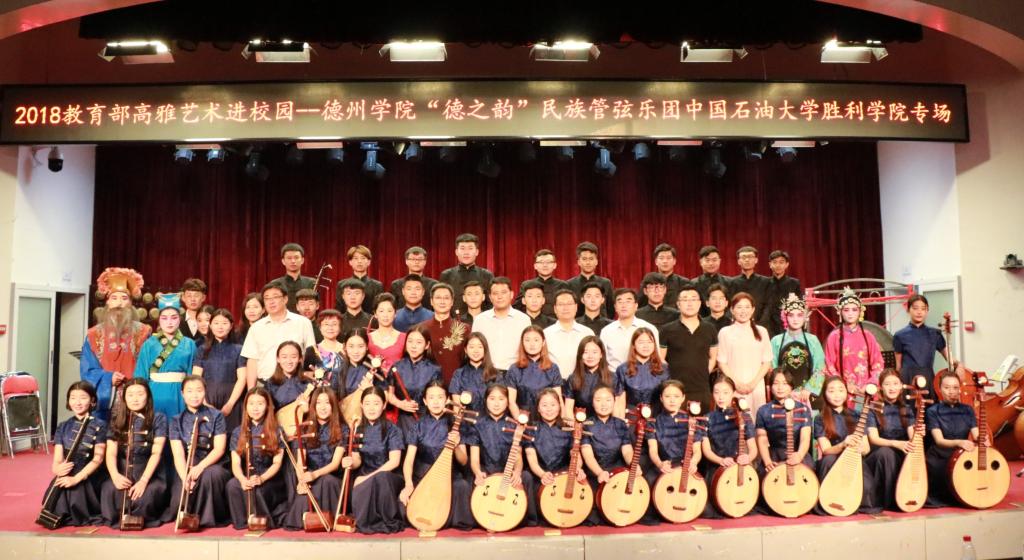 2018年6月1日,为响应教育部“高雅艺术进校园”的活动号召,德州学院音乐学院副院长段文带领“德之韵”民族管弦乐团走进中国石油大学胜利学院开展了为期两天的学术交流与演出。出席领导有中国石油大胜利学院党委书记孙学斋、副院长刘兆军、党委副书记孟昭亮、学校老领导马存栋、德州学院音乐学院副院长段文、教育与艺术学院执行院长田孝彦、教育与艺术学院书记张超。