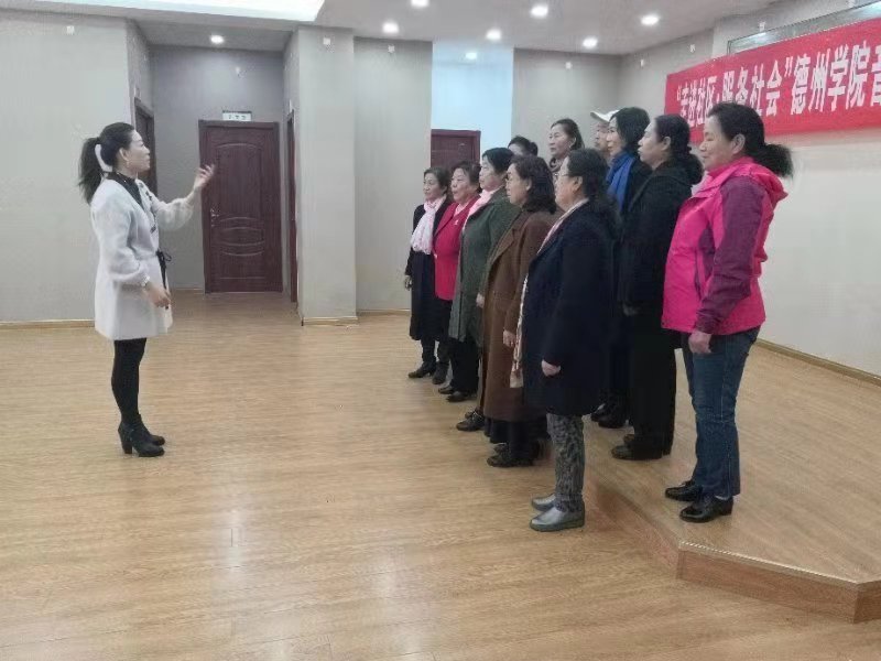 24日“中国传统文化进社区活动”由实践教研室主任徐琦老师主持,“德之韵”民族管弦乐团30多名成员参与演出。首先,由徐琦老师介绍了民族管弦乐团,民乐团下设四个声部:吹管乐声部(唢呐、笛、笙),拉弦声部(二胡),弹拨声部(琵琶、古筝、阮),打击乐声部(扬琴、鼓、锣、镲、木鱼、碰铃等)。接着,由管弦乐团的各位学生为社区成员展演了《千年运河展新颜》等曲目,通过徐琦博士的讲解交流,社区成员的每个人都受到了很大的启发。25日“社区大讲堂活动”主要由声乐教研组薛莲老师和李琛老师进行组织学习交流。首先,由两位老师分别向社区成员介绍了如何来演唱歌曲,并作出了歌曲展示,社区成员们都分别提出了自己在演唱过程中的问题与不足,主要是气息不到位,用嗓太多,两位老师针对这些问题为社区成员做出了纠正与示范,接着,在两位老师的指挥下,由社区成员合唱了《我和我的祖国》等曲目,最后,由社区成员个人做出歌曲展示,并由我院两位老师提出建议、进行指导。