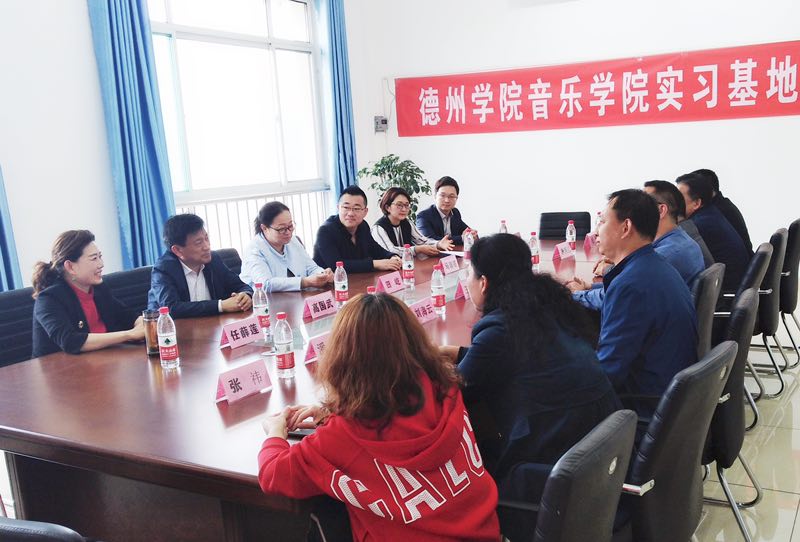 第十一中学校长王丁对我校领导老师的到访表示热烈的欢迎,双方在会议室进行了实习实训基地建设与教学活动开展等方面的讨论。随后,音乐学院院长田屹与第十一中学校长王丁签订合作协议并共同为“德州学院实习实训基地”揭牌。