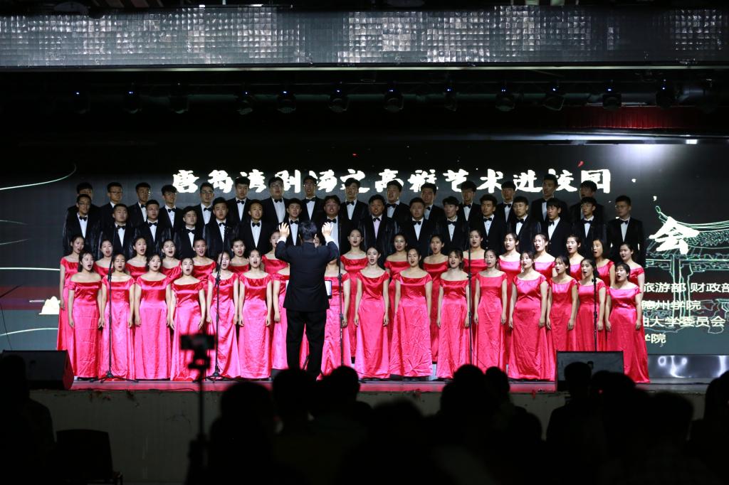 “高雅艺术进校园活动”是由国家教育部、文化和旅游部、财政部联合举办的,旨在贯彻落实中共中央国务院提出的“进一步推进高雅文化进校园活动,丰富校园文化生活,提高学生艺术修养”要求的重要举措。德州学院音乐学院“德之声”合唱团正式成为国家教育部的签约团体以来,致力于中外经典音乐文化的传承与弘扬,以全面提高驻鲁高校在校生的艺术审美和文化修养为己任,推陈出新,不断更新曲目,用不间断的艺术实践活动传播高雅艺术,得到社会各界的广泛赞誉。