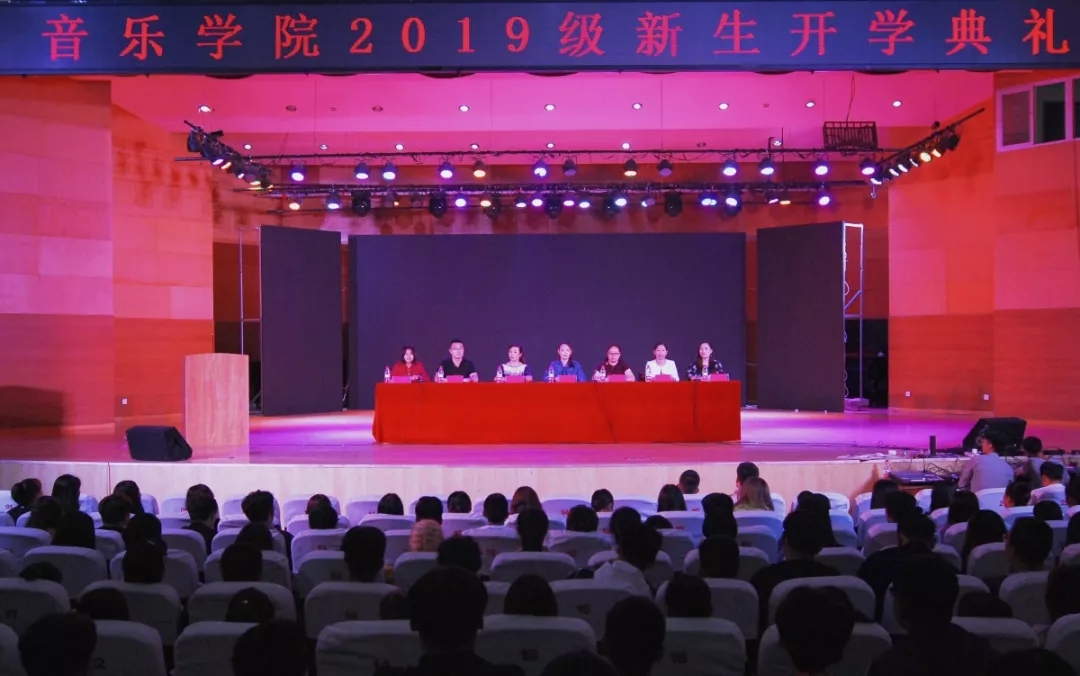 9月16日上午,音乐学院2019级新生开学典礼在南校报告厅举行。出席开学典礼的有党总支书记高莉、院长田屹、党总支副书记贺昱、音乐学系主任杜乡、音乐表演系主任宫莉、音乐教学实践中心主任马锡骞、新生班主任及2019级全体新生,典礼由团总支书记史璇主持。