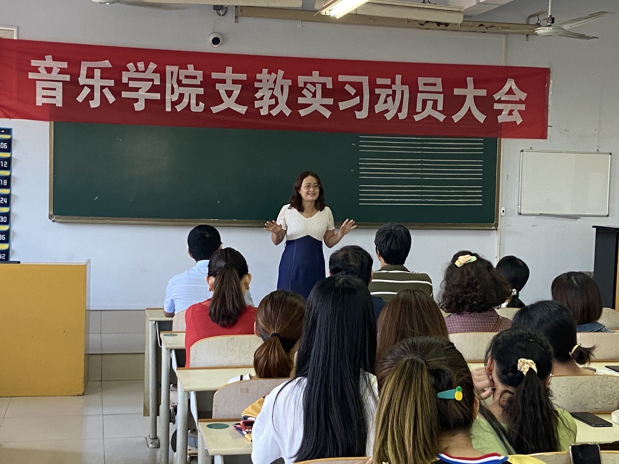 音乐学院团总支书记陈璨就支教实习期间的工作纪律和安全事项提出了三点要求:一是要从心理上做好充分准备,以一名人民教师的标准要求自己,提升自己的教育教学水平,为支教学校的发展贡献自己的力量;二是要高度重视人身安全,避免意外伤害事故发生,安全意识要牢记在心。三是要把握此次难得的锻炼机会,提高适应社会的能力,尽快实现角色转变。