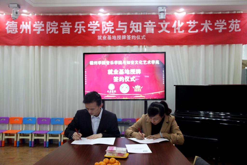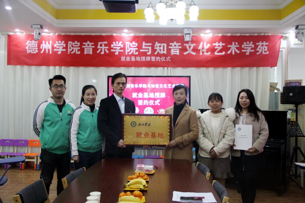 2020年11月6日,德州学院音乐学院与知音文化艺术学苑签订就业基地协议。音乐学院党总支副书记贺昱、德州知音艺术负责人蓝飞,音乐学院团总支书记陈璨,音乐学院辅导员李曼宁等出席了签约仪式。