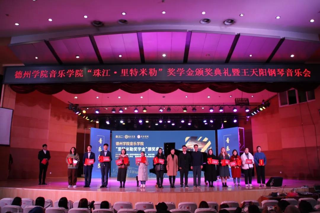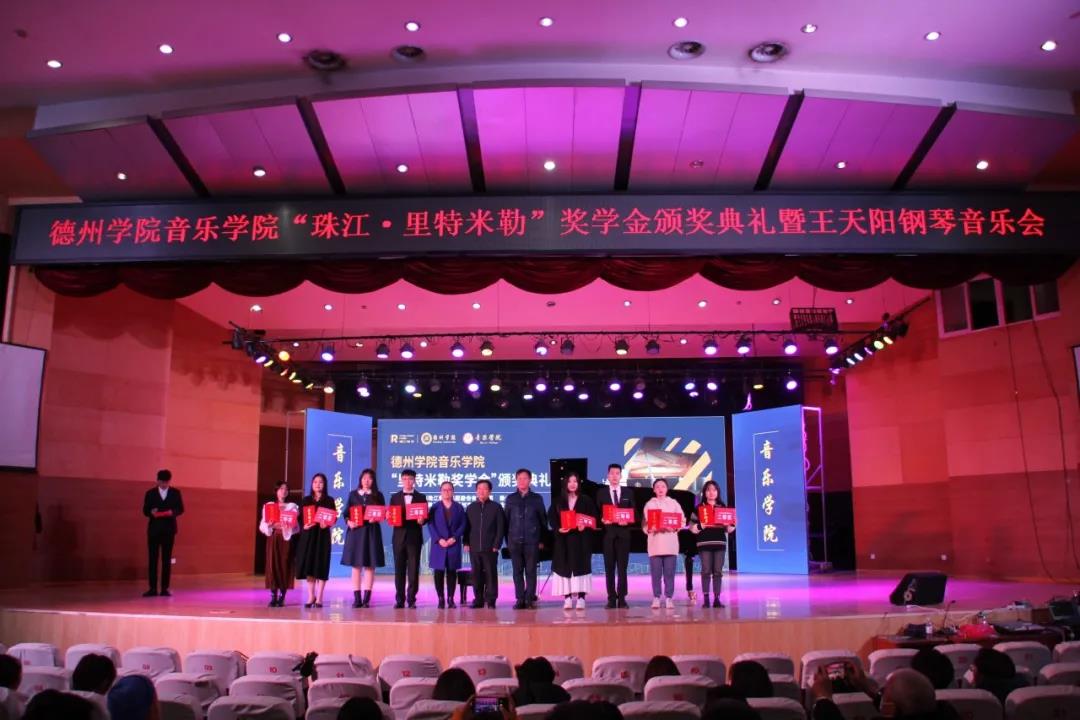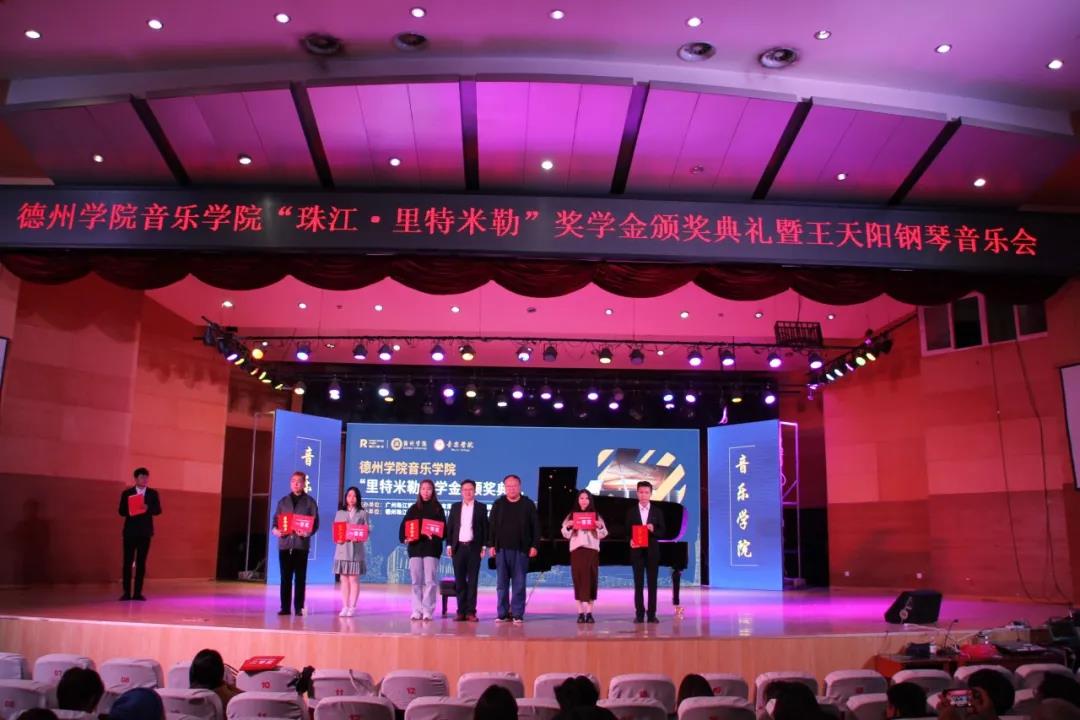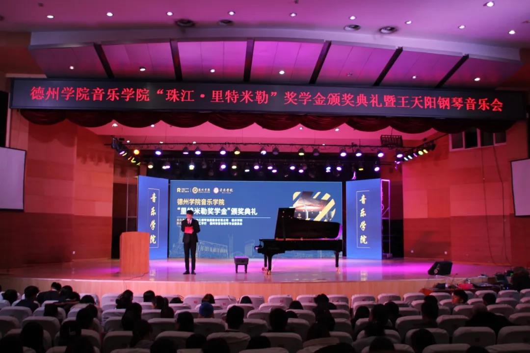 11月23日晚七点,音乐学院“里特米勒奖学金”颁奖典礼暨王天阳钢琴独奏音乐会在南校音乐厅隆重举行。德州学院合作发展处刘晓东副处长、广州珠江钢琴集团股份有限公司副总经理陈宣德、珠江钢琴集团广州珠江恺撒堡钢琴有限公司销售部业务经理黄健勇、珠江钢琴德州地区经销商德州珠江琴行总经理高文涛、音乐学院领导班子成员共同出席。