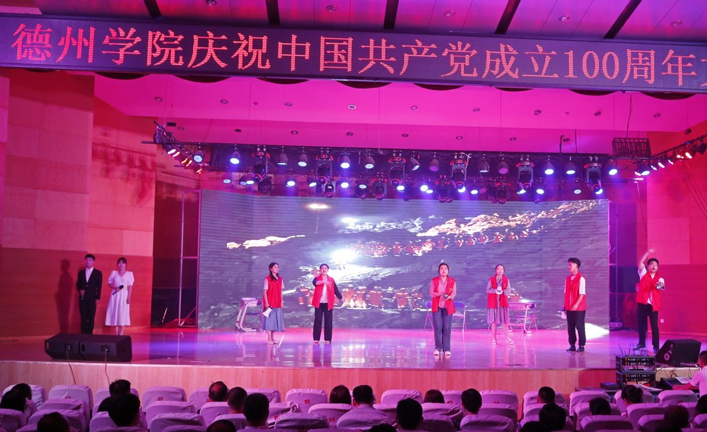 晚会在舞蹈《红旗颂》中拉开序幕。民乐合奏《唱支山歌给党听》曲调悠扬,抒发了对党最真挚的热爱,男女四重唱《百年》诉说着建党百年来的不易与艰辛。情景剧《到西部去》展示德院学生党员响应国家号召,参加“西部计划”志愿服务,他们带着对党的热爱、学校的期望以及老师的嘱托,在祖国和人民最需要的地方建功立业,用实际行动谱写服务西部、服务基层的壮丽篇章。《再一次出发》把晚会推向高潮,再一次出发,踏上全新的百年征程;再一次出发,继续谱写中华民族的辉煌。晚会在唱响党百年辉煌的同时,也展现着德州学院师生知党、爱党、信党,矢志不渝跟党走的坚定信念和奋斗情怀。最后全场起立,共同高唱《没有共产党就没有新中国》。