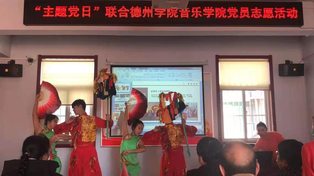 本次艺术讲堂由音乐学院韩晗老师主讲,以“传承经典、文化惠民”为主题,围绕“非物质文化遗产”保护与传承问题,从省级非遗传统舞蹈项目介绍了“非物质文化遗产”的历史渊源、艺术特征、以及如何保护传承我国优秀的“非物质文化遗产”。具体讲解了德州地区省级非物质文化遗产传统舞蹈项目——武城县抬花杠、齐河县绣球灯舞、临邑县绣球灯舞、德州跑驴、陵城区蹦鼓舞,由音乐学院舞蹈专业的同学们展示了各个传统舞蹈的基本动作和经典舞步,现场气氛热烈、掌声不断。