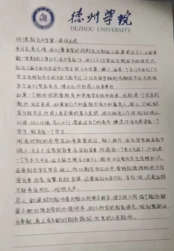 通过此次活动的开展,同学们对教师职业的重要性和使命感有了更深刻的认识,纷纷表示作为新时代的师范生,未来的教师,更应该将教育任务铭记于心,牢记“学高为师、身正为范”,努力学习基础知识,成为一名仁爱、谦德、身正的人民音乐教师。