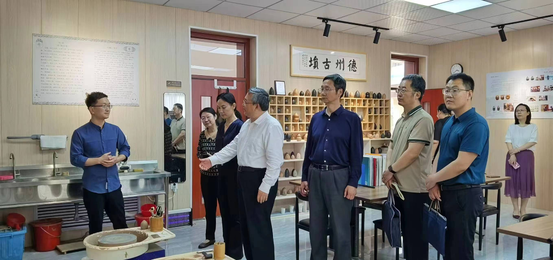崔书记在音乐学院负责人的陪同下到智慧琴房进行调研,在舞蹈房听了青年教师的舞蹈课,并参观走访了古埙工作室,随后在会议室与学院领导班子成员和党支部书记进行了座谈。会上音乐学院班子成员和各支部书记分别对学习贯彻习近平新时代中国特色社会主义思想主题教育、全面从严治党、党建工作、教科研工作、人才培养、社会服务、国际交流、学生工作等相关工作情况进行了详细汇报。