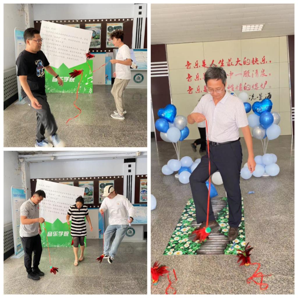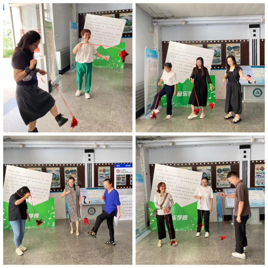 为迎接第39个教师节,在全院营造健康、和谐的氛围,9月11日下午,音乐学院工会在音乐楼举办了“喜迎教师节”踢毽子比赛活动,全体教职工参加。