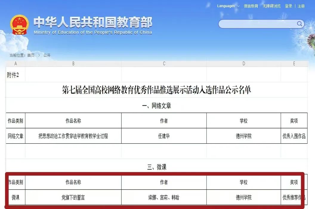 由教育部思想政治工作司、中央网信办网络社会工作局联合举办的第七届“全国高校网络教育优秀作品推选展示活动”遴选结果公示,音乐学院微课《党旗下的誓言》被评为优秀推荐作品。