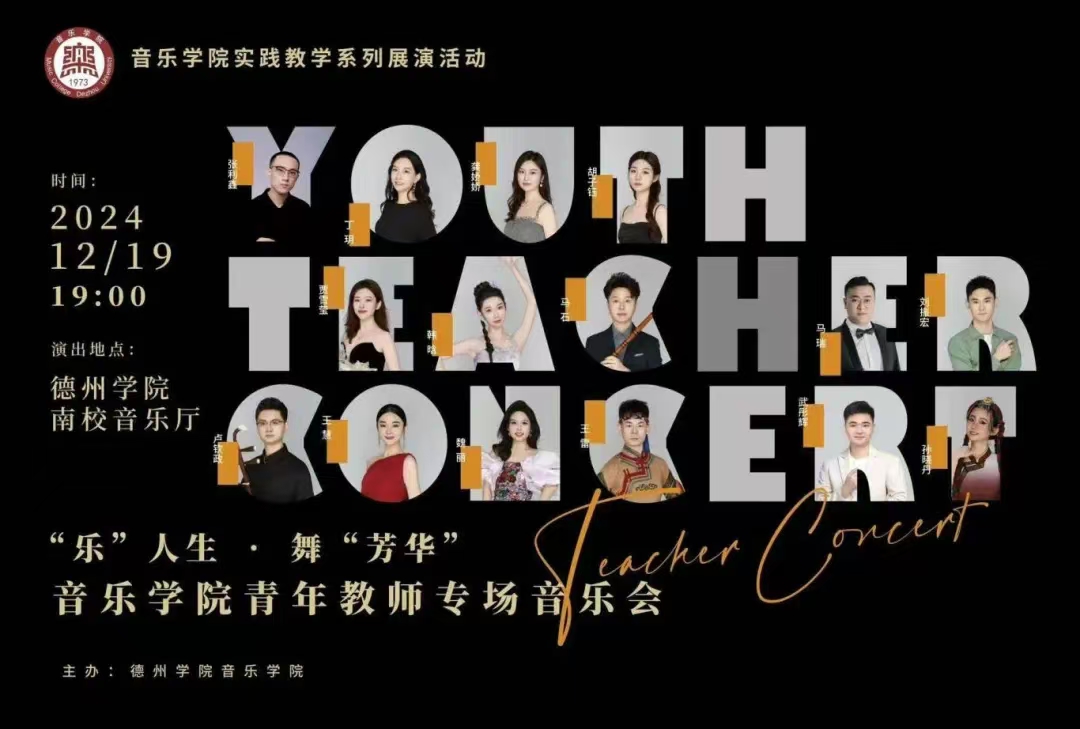 12月19日晚,德州学院音乐学院“乐”人生·“舞”芳华青年教师专场音乐会于南校音乐厅成功举行。校党委书记吴君,校党委委员、副校长徐静,党委委员、纪委书记、省监委驻德州学院监察专员崔新乐,德州职业技术学院党委委员、副院长刘宏杰,校党委委员、宣传部(教师工作部)部长冯琨及各部门、各学院领导莅临指导。音乐会现场,青年教师们以扎实的专业、高超的技艺,为观众带来了一场视听盛宴。