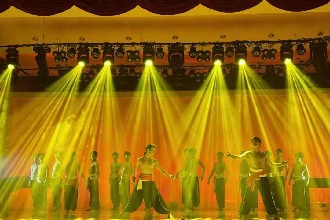 王雷老师、武彤辉老师、刘振宏老师为我们带来了民族舞《大河之子》,在奔涌的黄河岸边,一群热血汉子在天地之间挥洒着刚毅与坚韧,跨越荆棘,走出荒芜,行出一程路,开出一片天。