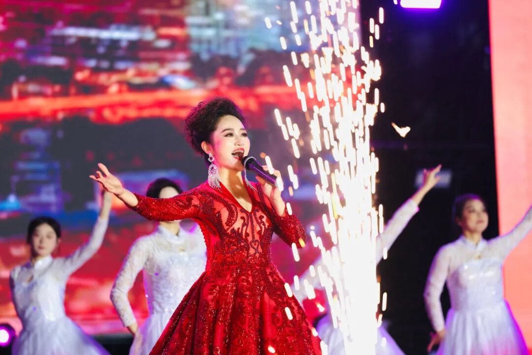 我院李琛老师带来的独唱《这就是中国》将第二篇章气氛推向高潮。她以扎实的声乐功底演绎出歌曲的恢弘气势,嗓音清亮如穿透云层的阳光,将对祖国的热爱与自豪展现得淋漓尽致。台下观众随着旋律挥动手中的国旗,这首饱含深情的歌曲引发了全场强烈共鸣。