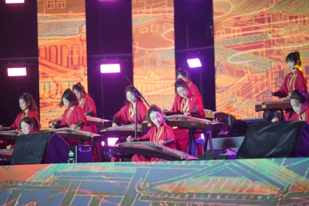 在第一篇章中,音乐学院舞蹈团带来的舞蹈《盛世欢歌》率先登场。舞者们用灵动的身姿和富有张力的动作,展现出青春的蓬勃朝气,仿佛一幅盛世欢腾的画卷在观众眼前展开。随后,古筝重奏《山河万象》悠扬响起,演奏者们的手指在琴弦上轻盈跳跃,古筝的独特音色相互交织,勾勒出山河壮丽的景象,让观众沉醉其中。