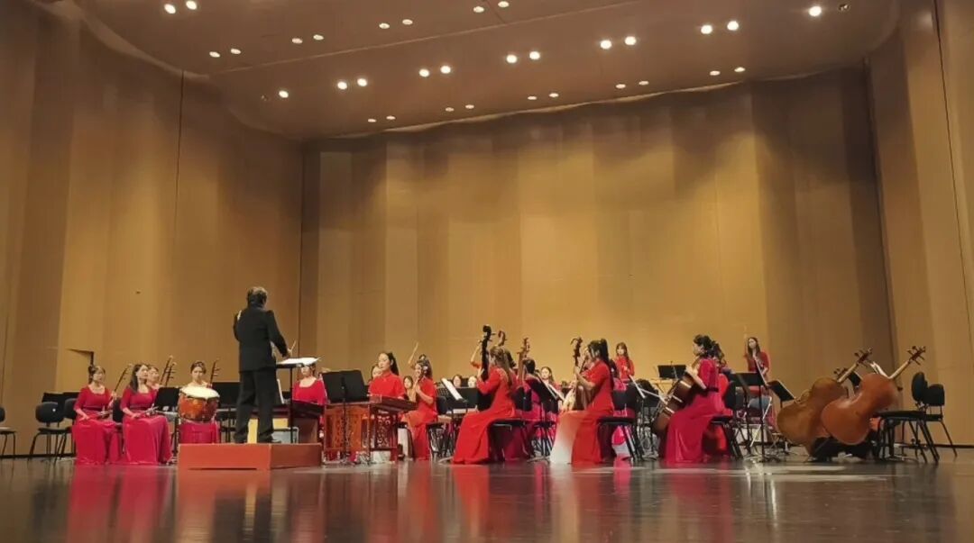 本场音乐会曲目丰富多样,涉及独奏、独唱、重奏、合奏等多种形式。我院青年教师卢钦政演奏的二胡独奏《蒙山沂水情》既体现了沂蒙山水的辽阔意境,又传递出山东人民质朴、厚重的特有情感,意蕴悠长。以我院学生为主组成的女子新民乐《象王行》是本场音乐会的亮点之一,此曲在原版电视节目配乐基础上,融入了民族器乐如泣如诉、优雅绵长的音色特点,曲风张弛有度,视听俱佳。