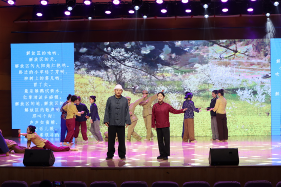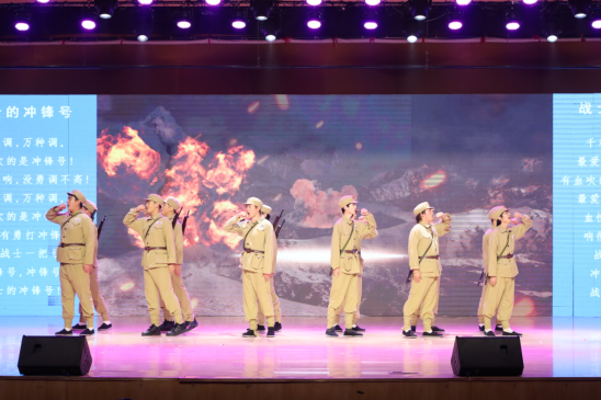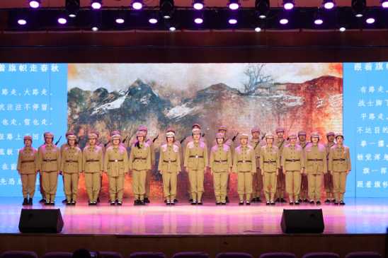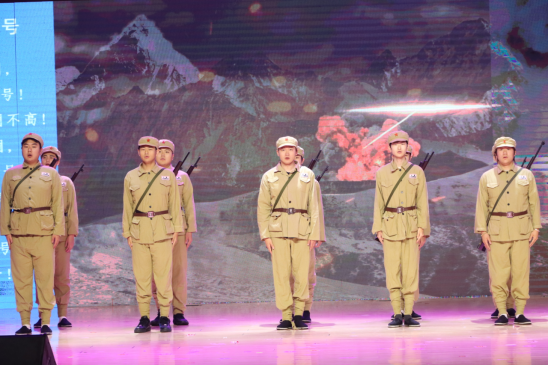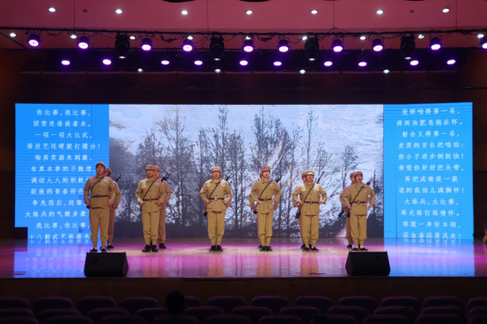 西征组歌《担当》,是音乐学院举全院之力打造的首部原创作品。创作以“挖掘德州红色元素、传承教导旅精神、打造德院标杆作品”为核心,将山东渤海军区教导旅西征的热血事迹,与当代大学生奔赴西部计划的青春选择相联结,以专业艺术形式讲本土红色故事、传德院育人初心。整场演出以精巧的设计串联起跌宕起伏的情节,随着场景的交替变换,深情的歌声与激昂的诵读交织回荡,生动刻画了烽火连天的英雄岁月,让师生沉浸式感悟红色精神与时代责任,既实现本土红色文化与思政教育的深度融合,也成为学院以文化人、以乐铸魂,用“第二课堂”培育新人的生动实践。