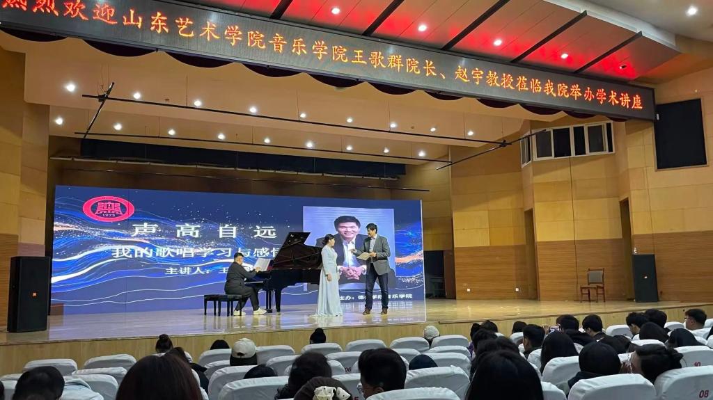 为深化艺术教育教学改革,搭建高水平校际学术交流平台,11月6日,音乐学院特邀山东艺术学院音乐学院院长王歌群教授、钢琴系赵宇教授齐聚德州学院南校音乐厅,先后开展钢琴、声乐学术讲座,以专业指导与深度分享,为师生带来全方位的艺术启迪,助力音乐教育质量提升。音乐学院院长马锡骞、副院长徐琦及学院师生参加此次讲座。