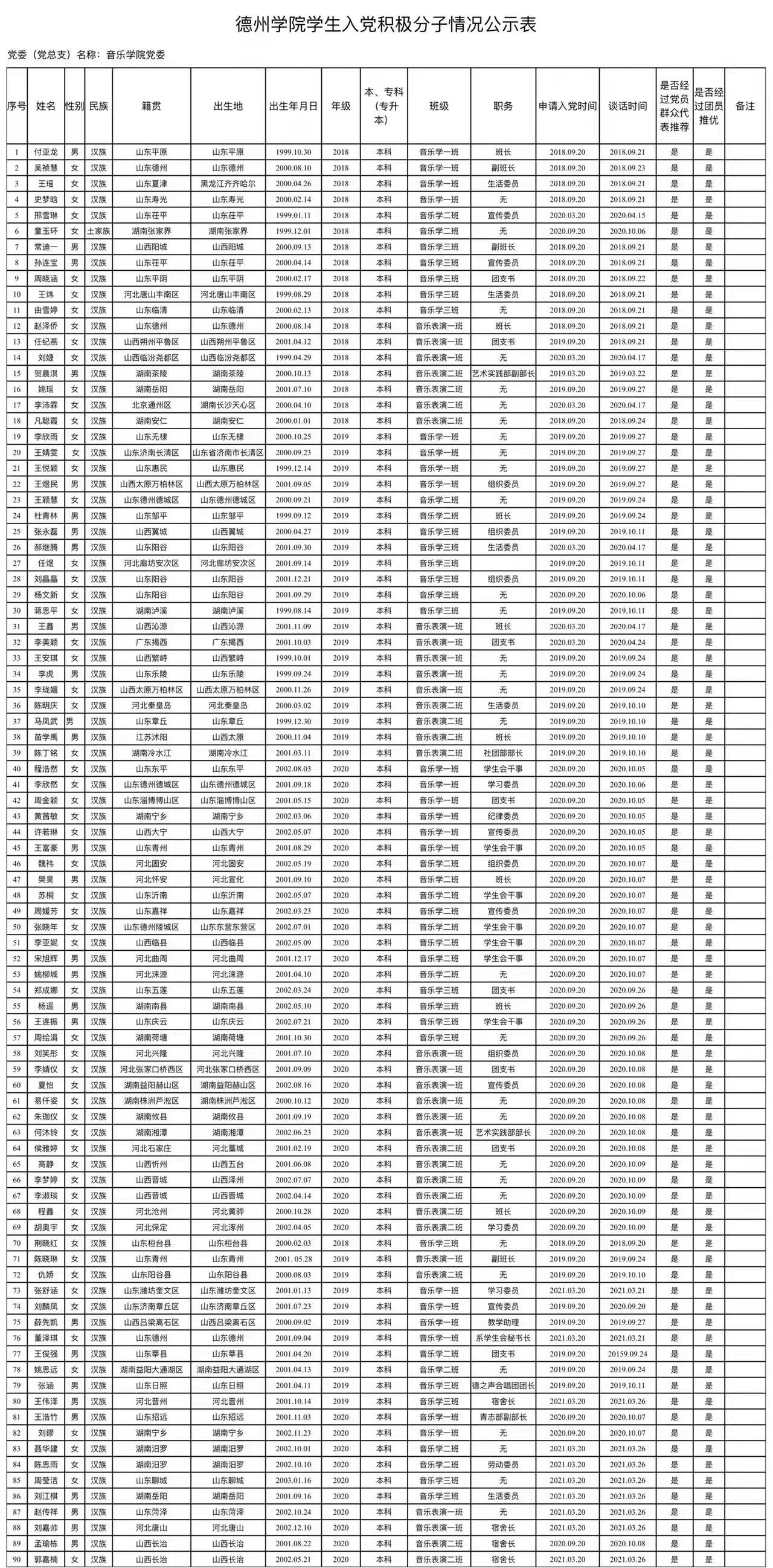 附表:德州学院入党积极分子情况公示表