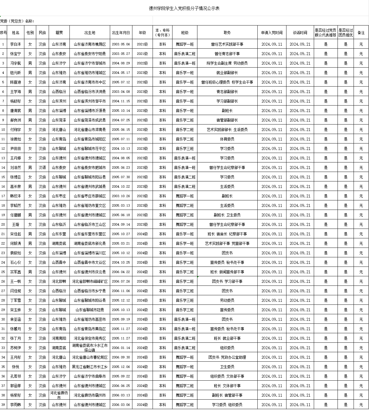 附表:德州学院入党积极分子情况公示表