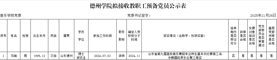 附表:德州学院拟接收中共预备党员公示表