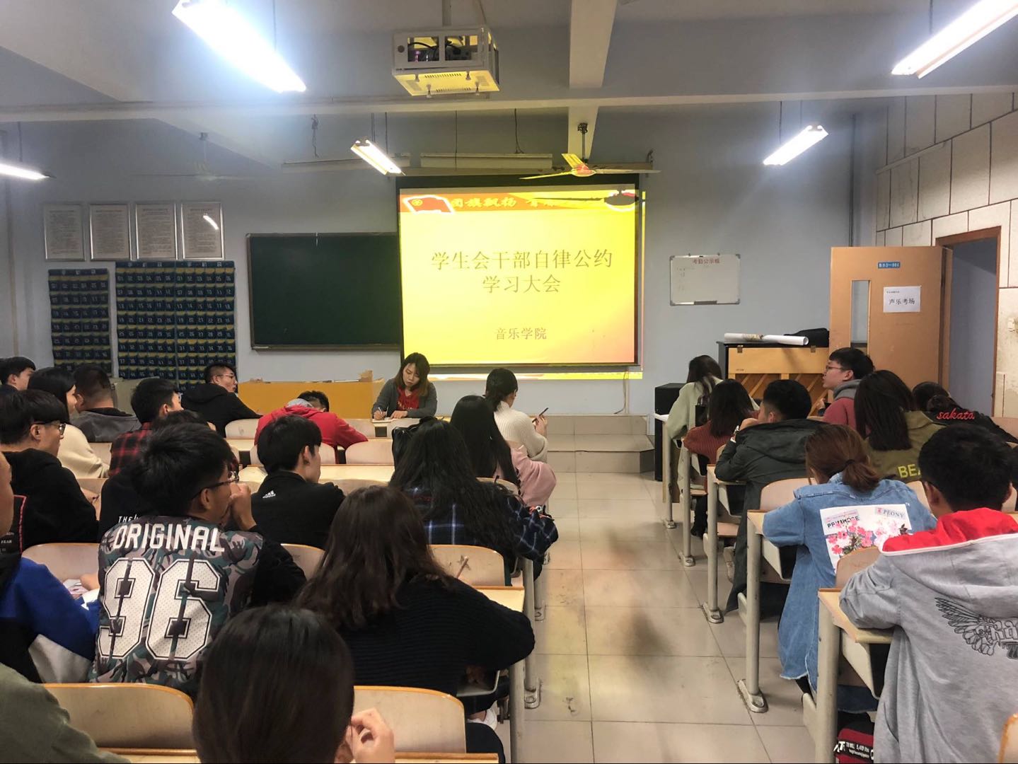 10月14日晚7点,音乐学院学生会在系三楼合堂召开了自律公约学习大会,团总支书记史璇、政治辅导员李曼宁以及25届全体学生会成员参会。