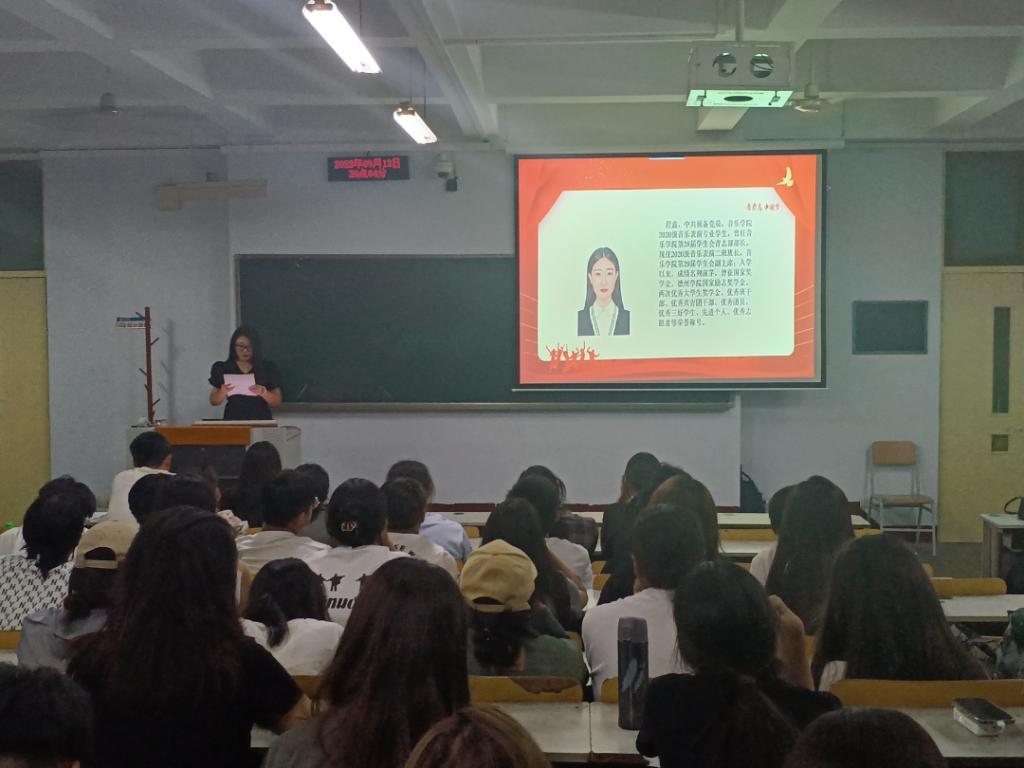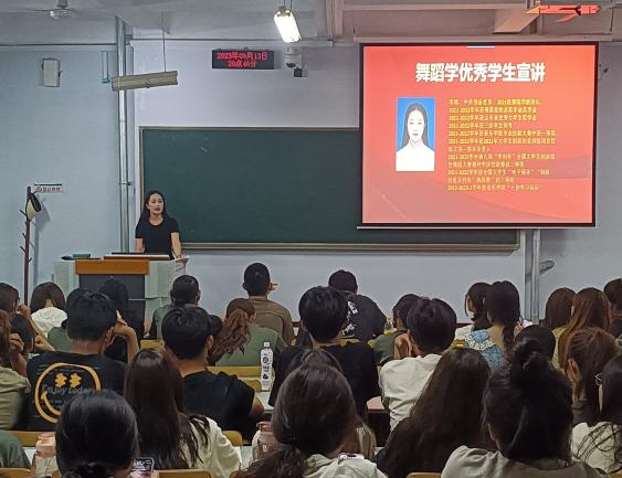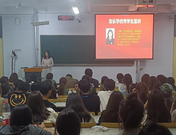 为进一步宣传在校优秀大学生和优秀学生干部典型事迹,发挥榜样示范引领作用,做好新生职业生涯规划,9月13日,音乐学院在5号楼201、202教室开展2023级新生学习养成教育活动。