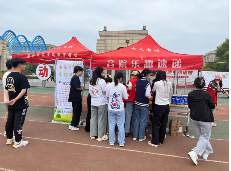 音乐学院在心理健康月期间举办“乐趣速递”心理户外素质拓展活动,活动在学校体育场举行,现场吸引众多学生参与其中。