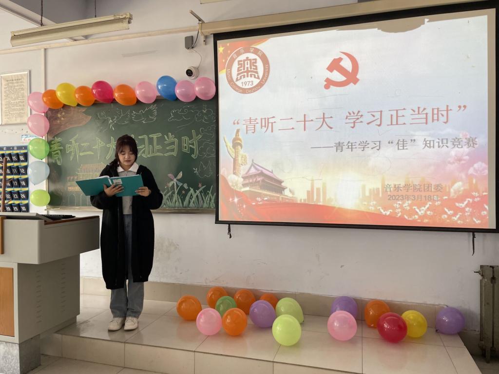 为深入学习宣传贯彻党的二十大精神,3月18日,音乐学院举办“青听二十大,学习正当时”——青年学习“佳”知识竞赛活动。