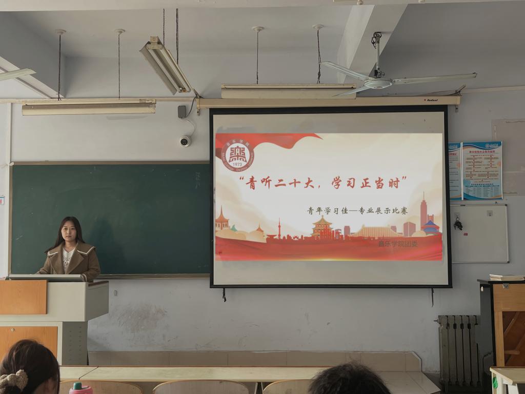 为深入学习宣传贯彻党的二十大精神,加强青年学生对党的二十大的学习和理解。3月18日上午,音乐学院团委在0261教室举行“青听二十大,学习正当时”——青年学习“佳”专业展示比赛。