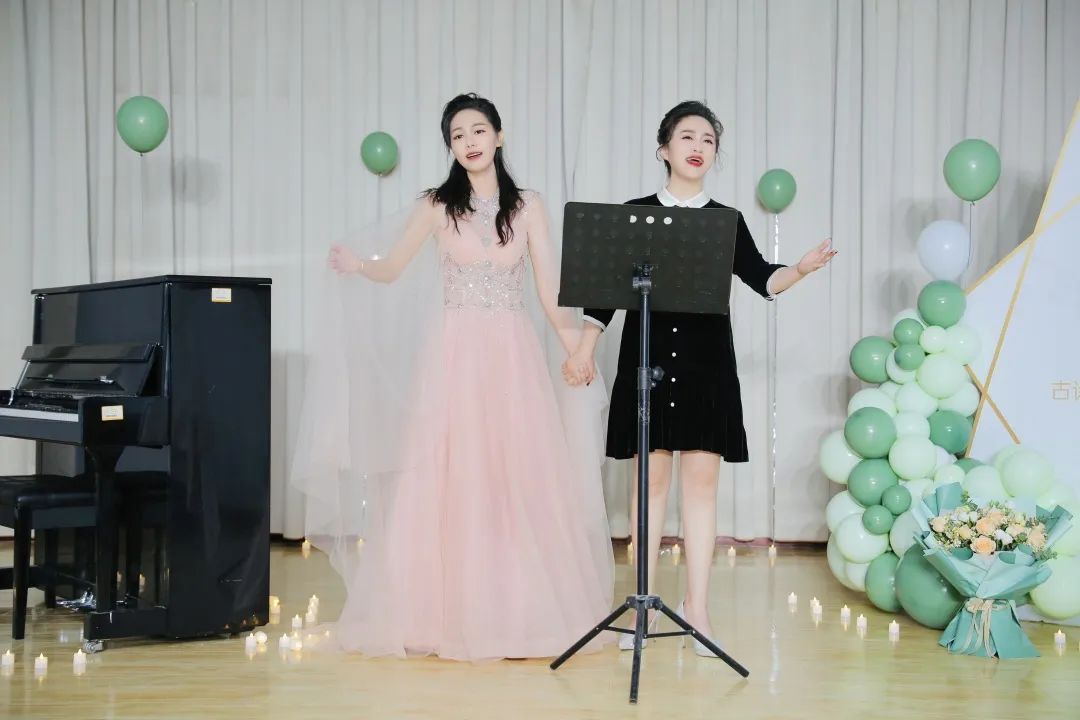 音乐会尾声,李琛老师登台朗然声扬,演绎《蝶恋花·槛菊愁烟兰泣露》,将诗作离愁别恨唱尽,歌声情意婉转又寥阔高深。音乐会最后一首歌曲是由李琛老师演唱的《与你相见若如初》,歌曲咏叹天下有情人相爱一场,纵使情非得已两相分离,仍念念不忘初遇的那份美好。学生上台与老师合唱,“与你相见若如初,我愿一梦红尘,忘却经纶,不乱于心,岁月静安……”浓浓师生情谊,尽在一首歌咏之中。
