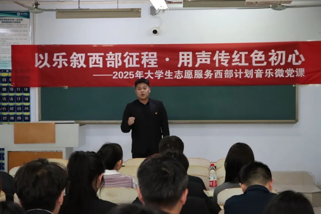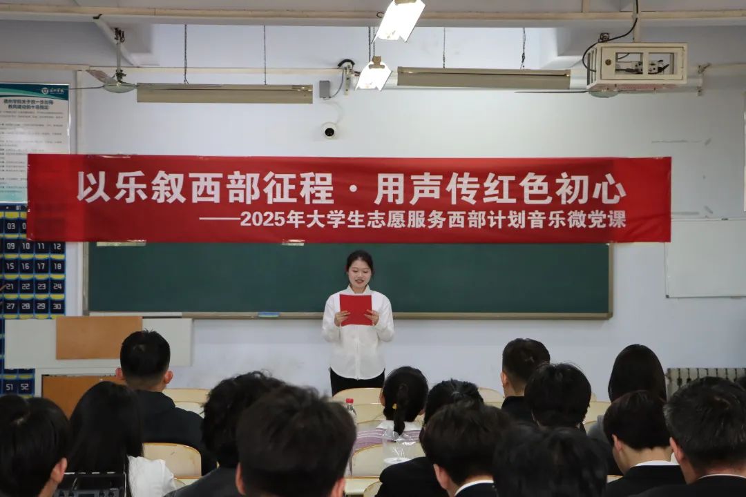 为落实学校党委《关于进一步加强大学生志愿服务西部计划工作的意见》,音乐学院将红色基因传承与专业能力提升深度融合,激励更多学生投身西部。