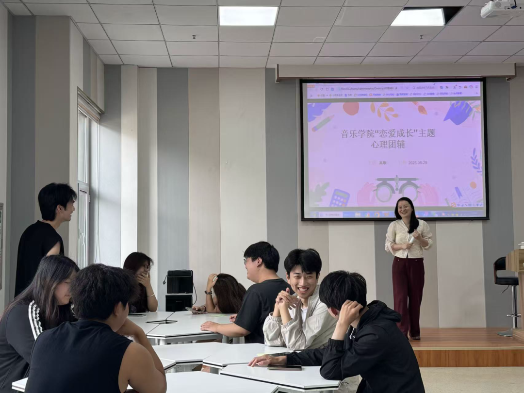 2025年5月29日,音乐学院邀请心理中心高歌老师在东校区心理中心开展“恋爱成长”主题心理团辅活动,音乐学院学生踊跃参与其中。此次活动聚焦于帮助学生塑造正确恋爱观、提升人际交往能力,为学生的心理健康与情感发展搭建平台。