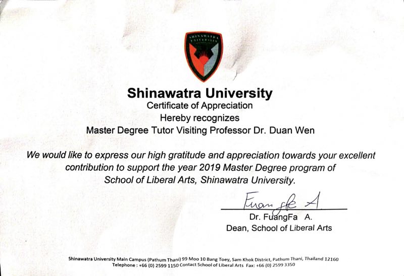音乐学院副院长段文教授受聘为泰国西那瓦大学硕士生导师