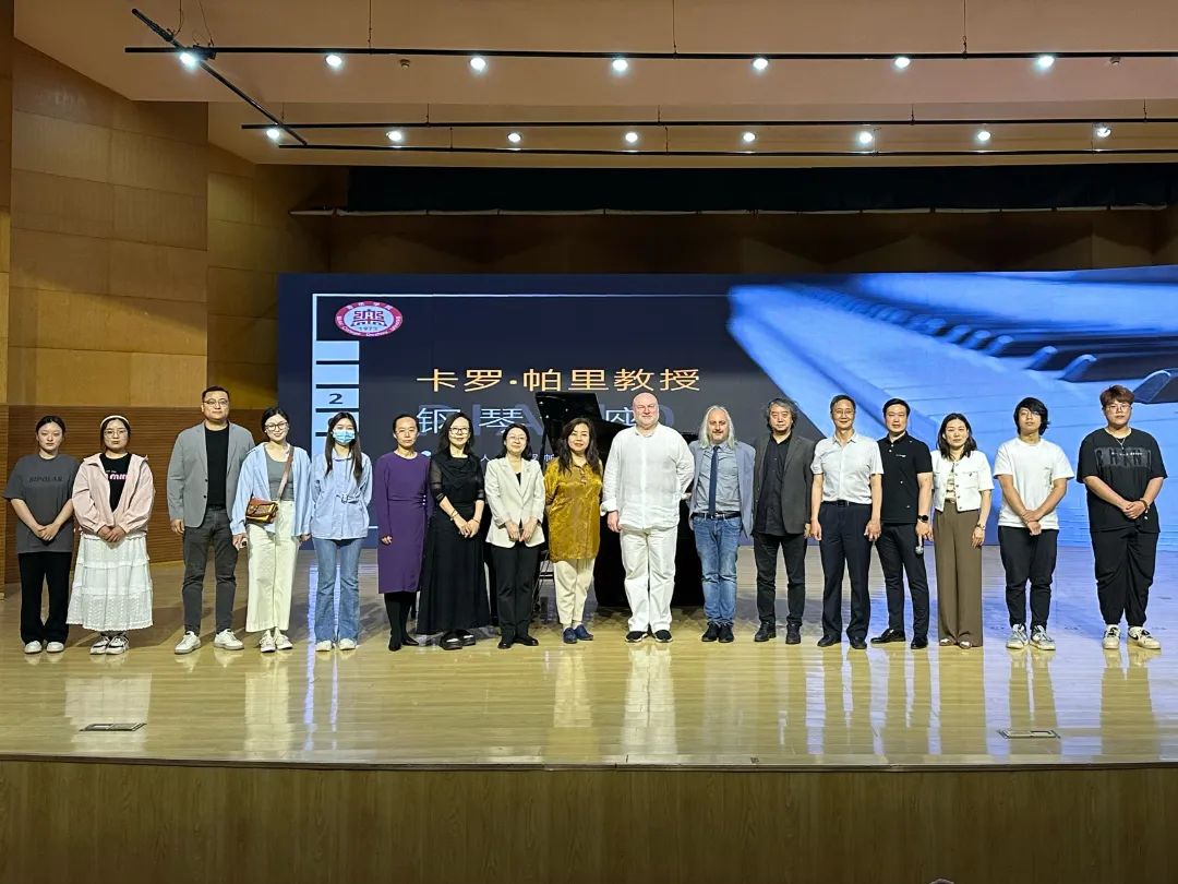 为稳步推进音乐学院音乐专业特色发展,助力高水平国际化音乐人才培养。5月16日上午,音乐学院邀请意大利佩萨罗罗西尼国立音乐学院国际交流中心主任、钢琴教授卡罗· 帕里于南校区音乐厅成功举办《感受钢琴魅力》的专题讲座,音乐学院钢琴教研室全体教师及学生共同参与本次国际大师活动。