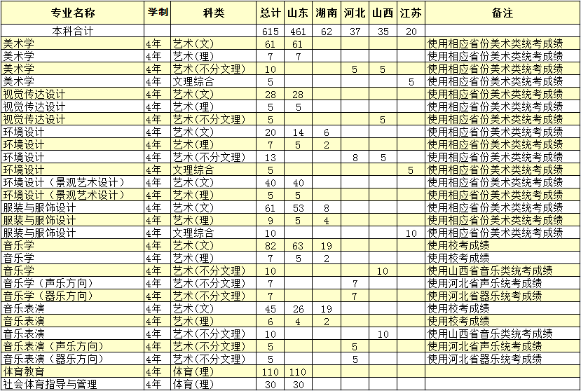 德州学院2018年普通本科艺体类招生计划