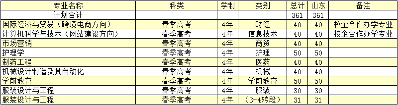 德州学院2018年普通本科春季高考专业招生计划