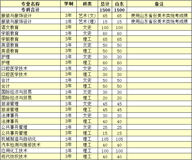德州学院2018年普通专科专业招生计划