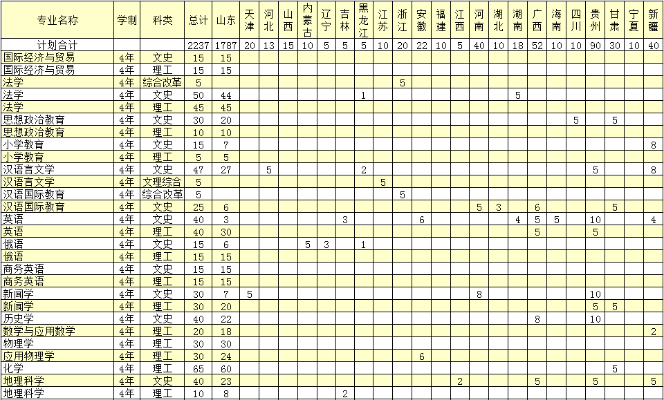 德州学院2018年普通本科文理类招生计划
